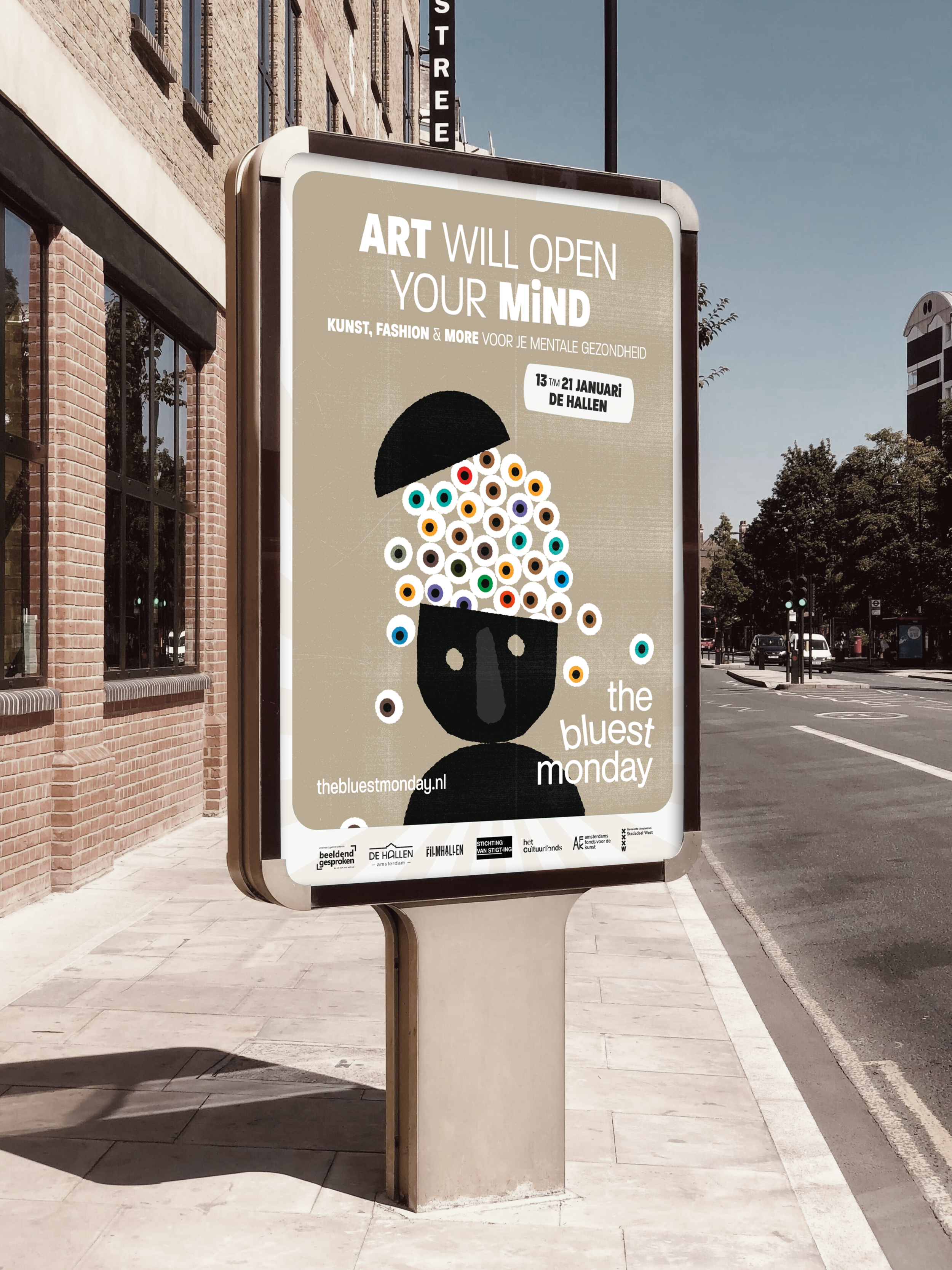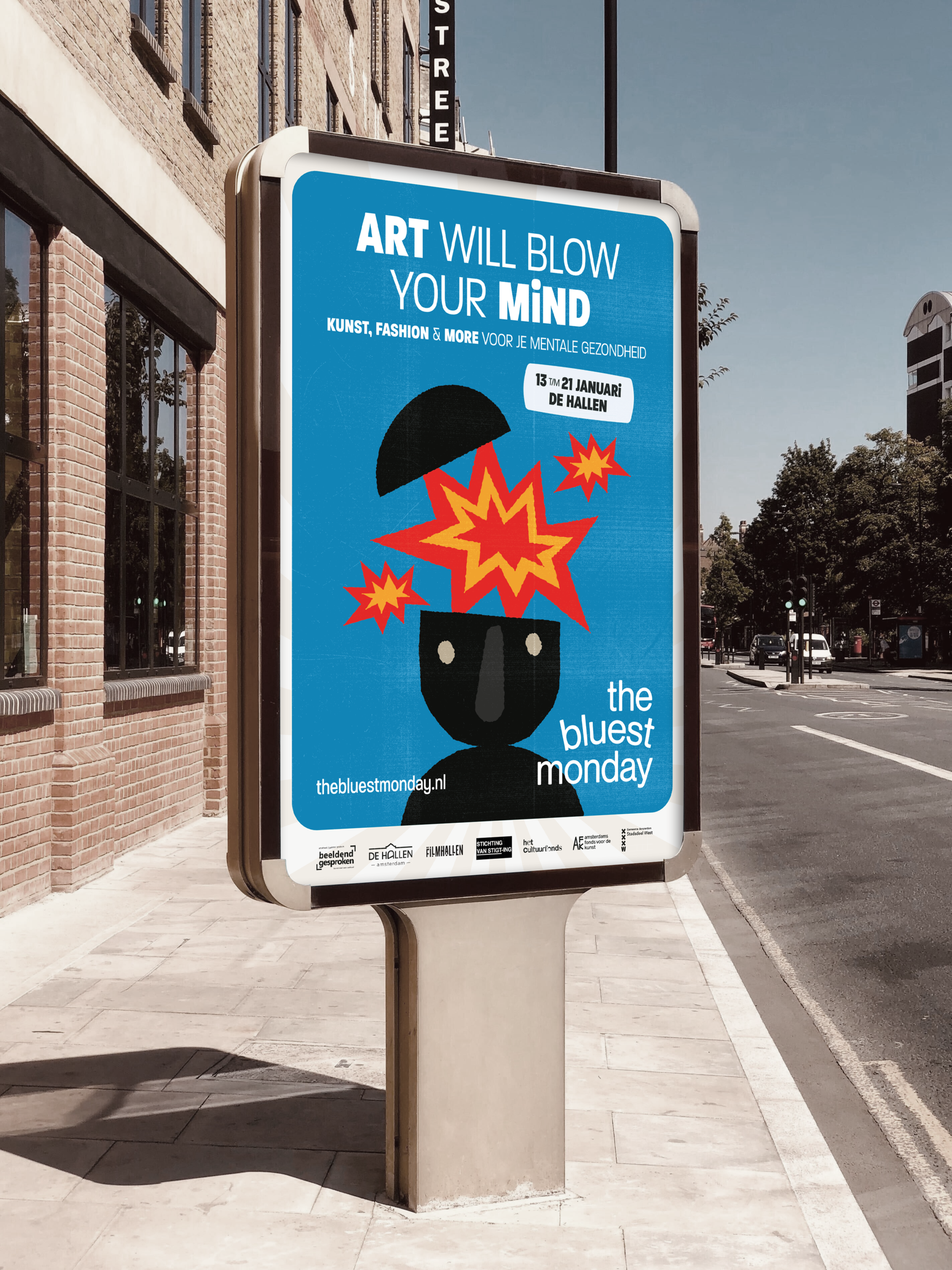 Het zou goed zijn als we meer zouden praten over hoe het met ons gaat. Je problemen met een ander delen, maakt dat ze vaak al iets lichter worden. The Bluest Monday opent daarom het gesprek met kunst. Want kunst breekt je hoofd open. Het haalt je uit je eindeloze gedachtestroom en stuurt je nieuwe kanten op. Kunst geeft je helderheid, inspiratie, nieuwe ideeën, en daardoor misschien ook wel hoop.